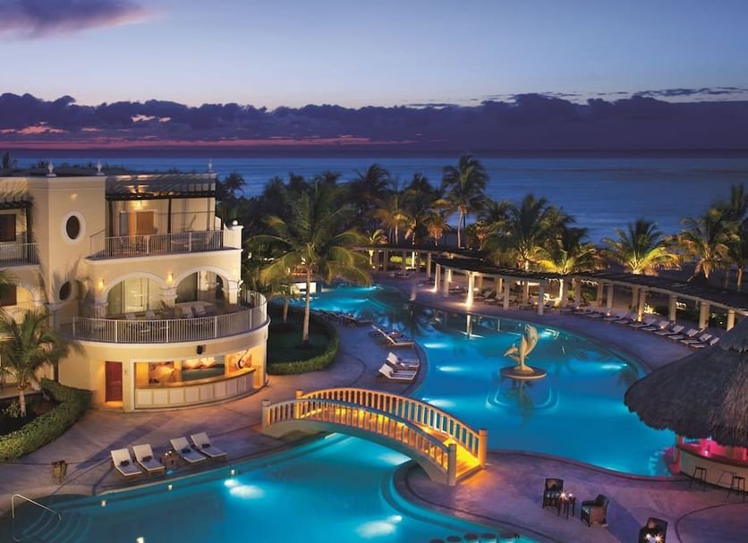 Resort de lujo a pocos minutos de las ruinas de Tulum. Ofrece suites de estilo colonial, spa de clase mundial, 9 restaurantes y bares, club infantil, shows nocturnos y actividades acuáticas. Tiene zonas tranquilas solo para adultos, además de ambientes familiares. Su ubicación en una playa amplia y tranquila lo convierte en una de las mejores opciones para viajes románticos y vacaciones con niños.